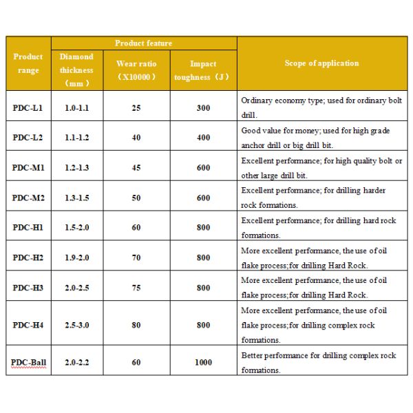 Our company produces PDC coal mine composite sheet using high-quality Diamond powder as raw material, the diamond powder and cemented carbide substrate sintering at ultra high temperature and pressure conditions, the product has high hardness, wear resistance, good impact resistance, fast foot, high efficiency, economic benefits, etc., are widely used in Geological Exploration, coal mining, mining drilling, Foundation drilling, etc.